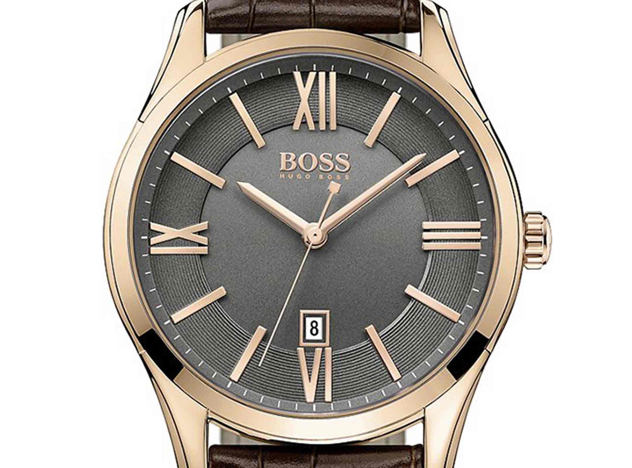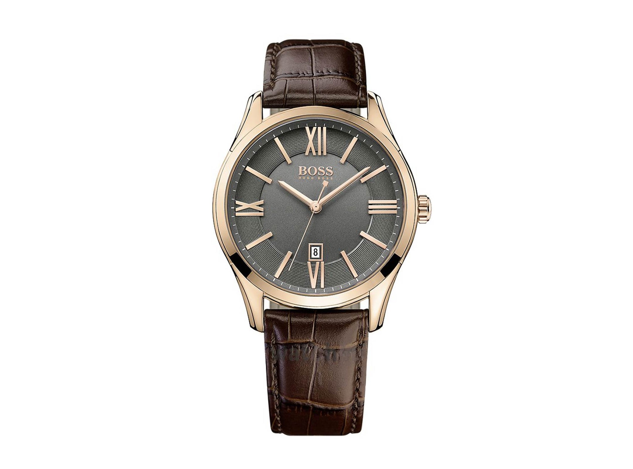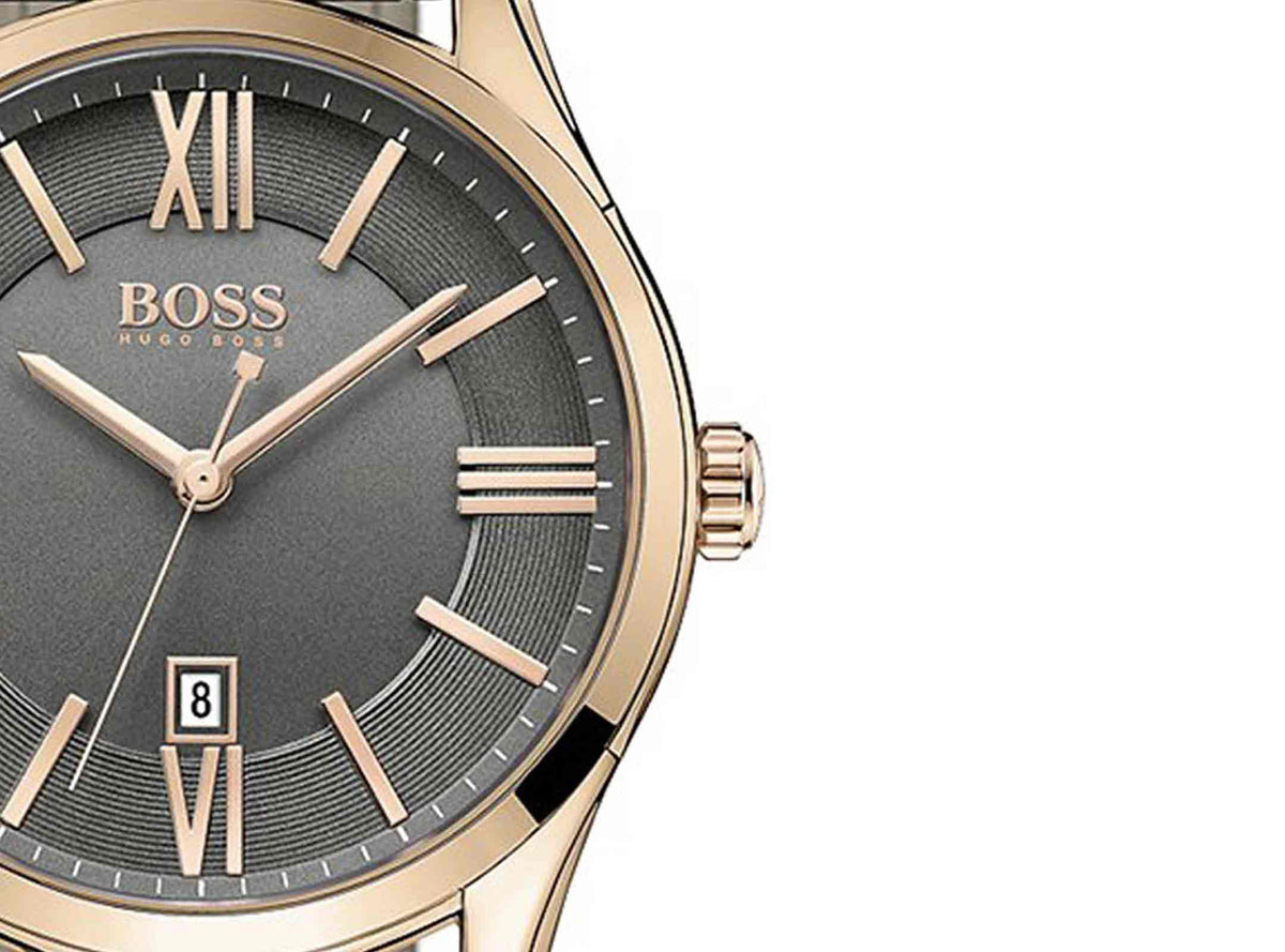 Give time check a new definition with this stunning watch from Hugo Boss. It features a sleek and sturdy band that fits easily on your wrist. Its stainless steel case and classic look gives it a unique touch. Pair this time piece with a dress shirt and denim jeans for a stylish and modern look. Style and simplicity are hallmarks of this fine time piece from Hugo Boss.