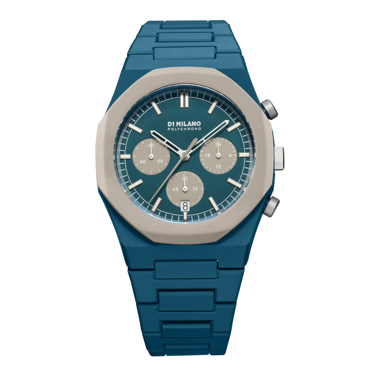 You know when you see something that looks really amazing, don't you? That’s why you need it on your wrist. We have combined a high-contrast and monochromatic palette to give character to this watch. Full petrol green colored bracelet and case with a touch of taupe on the bezel. The dial is petrol green with taupe sub-dials and white details.