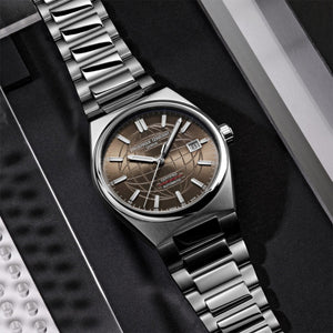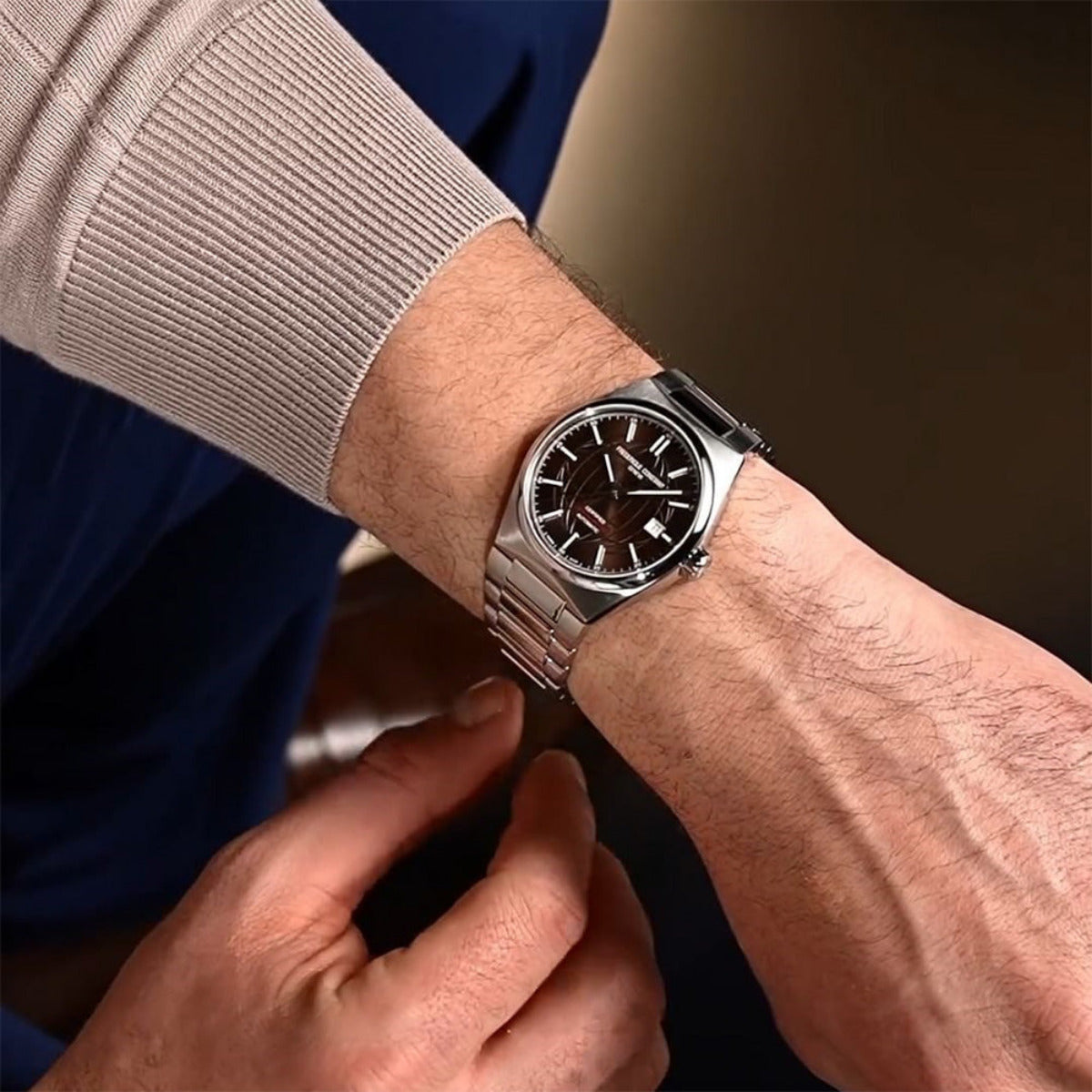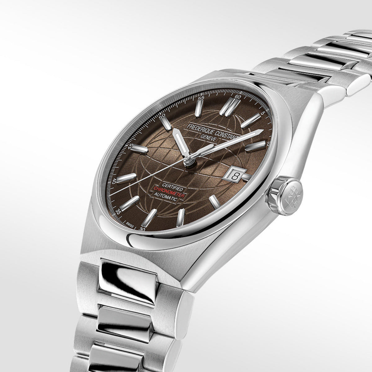 The Highlife Automatic COSC meets the criteria of the COSC, the Official Swiss Chronometer Testing Institute. This means it is a piece whose precision is certified by an independent measurement body, attesting to its mechanical excellence. As a guardian of the long tradition of high-precision Swiss Made timepieces, the Highlife Automatic COSC is also finished according to the standards of fine Geneva watchmaking, with its movement visible through a sapphire case back. The watch, offered with a chocolate dial.